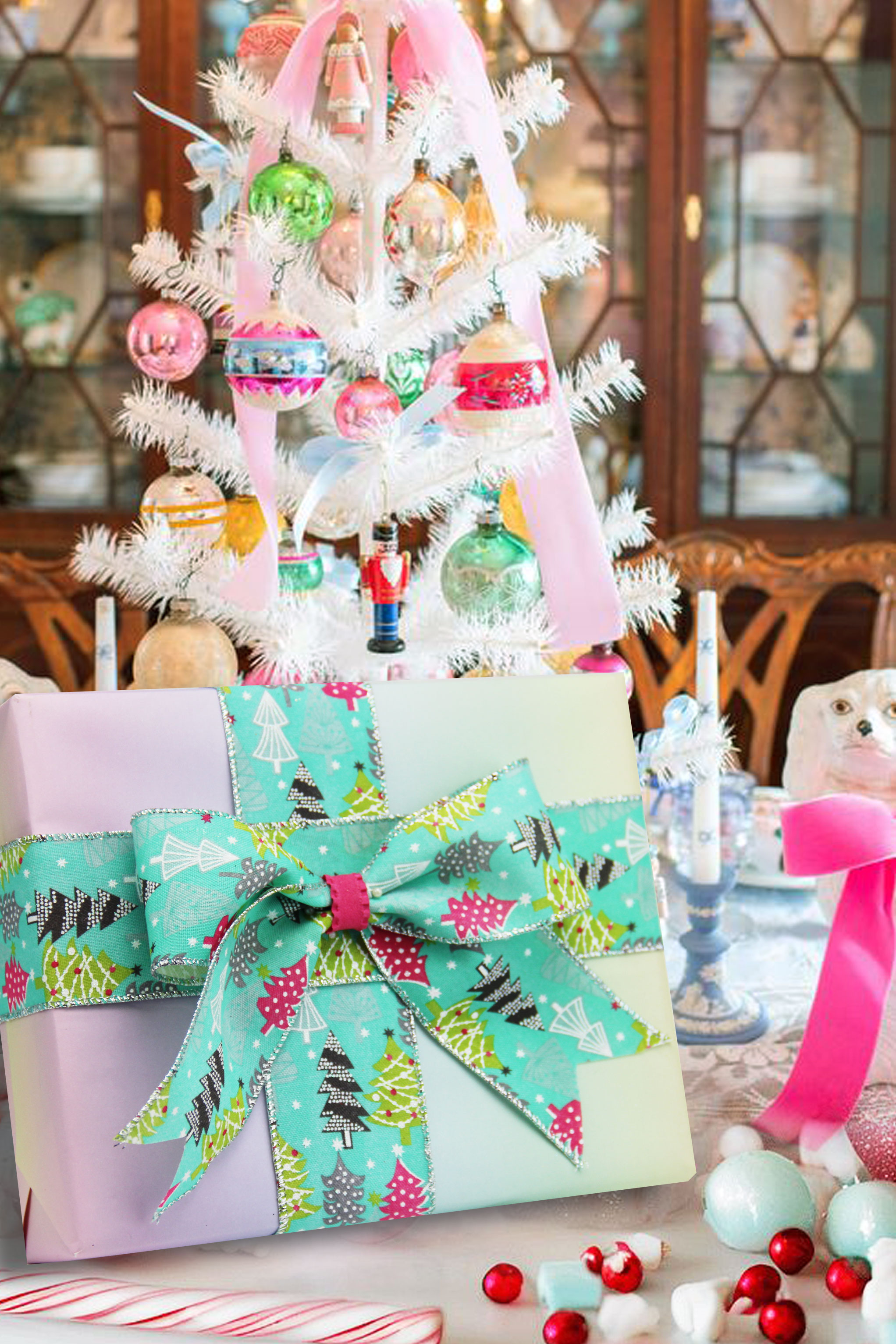 2025圣诞装饰-粉黛银晖色系织带应用