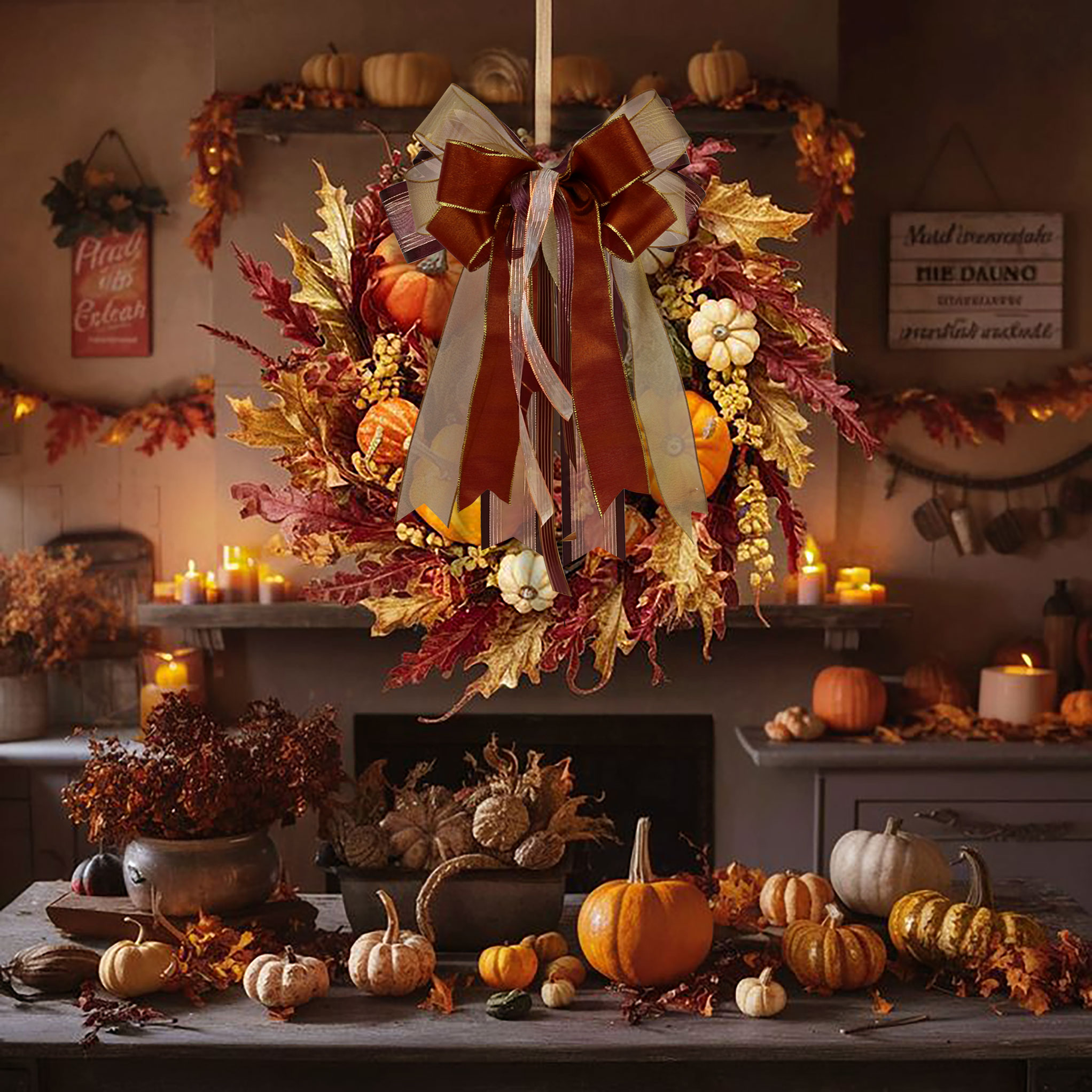 2025感恩节装饰-鎏金枫烬色系织带应用