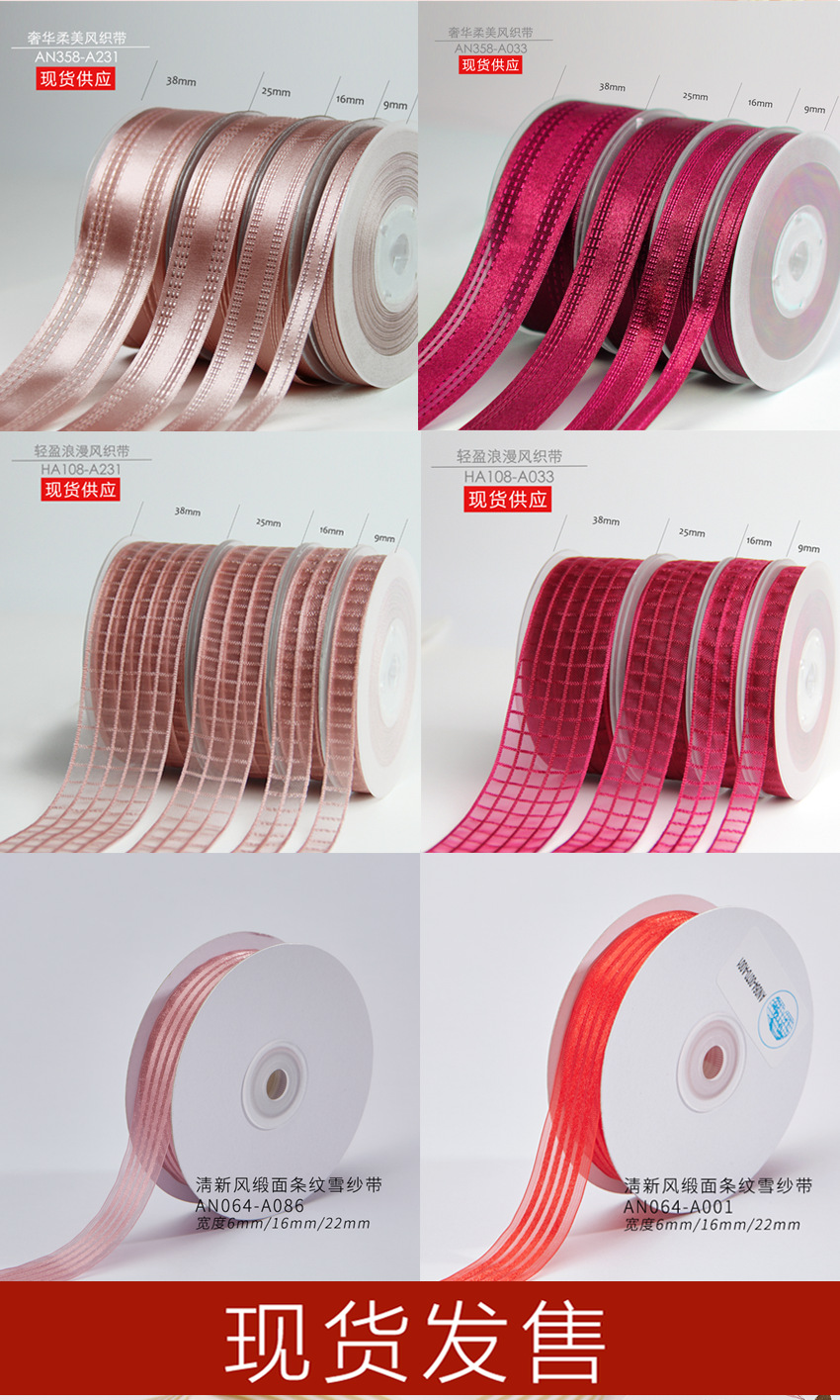 织带适用于礼品包装、服装服饰、节日装饰、家居装饰、花卉包装等。
