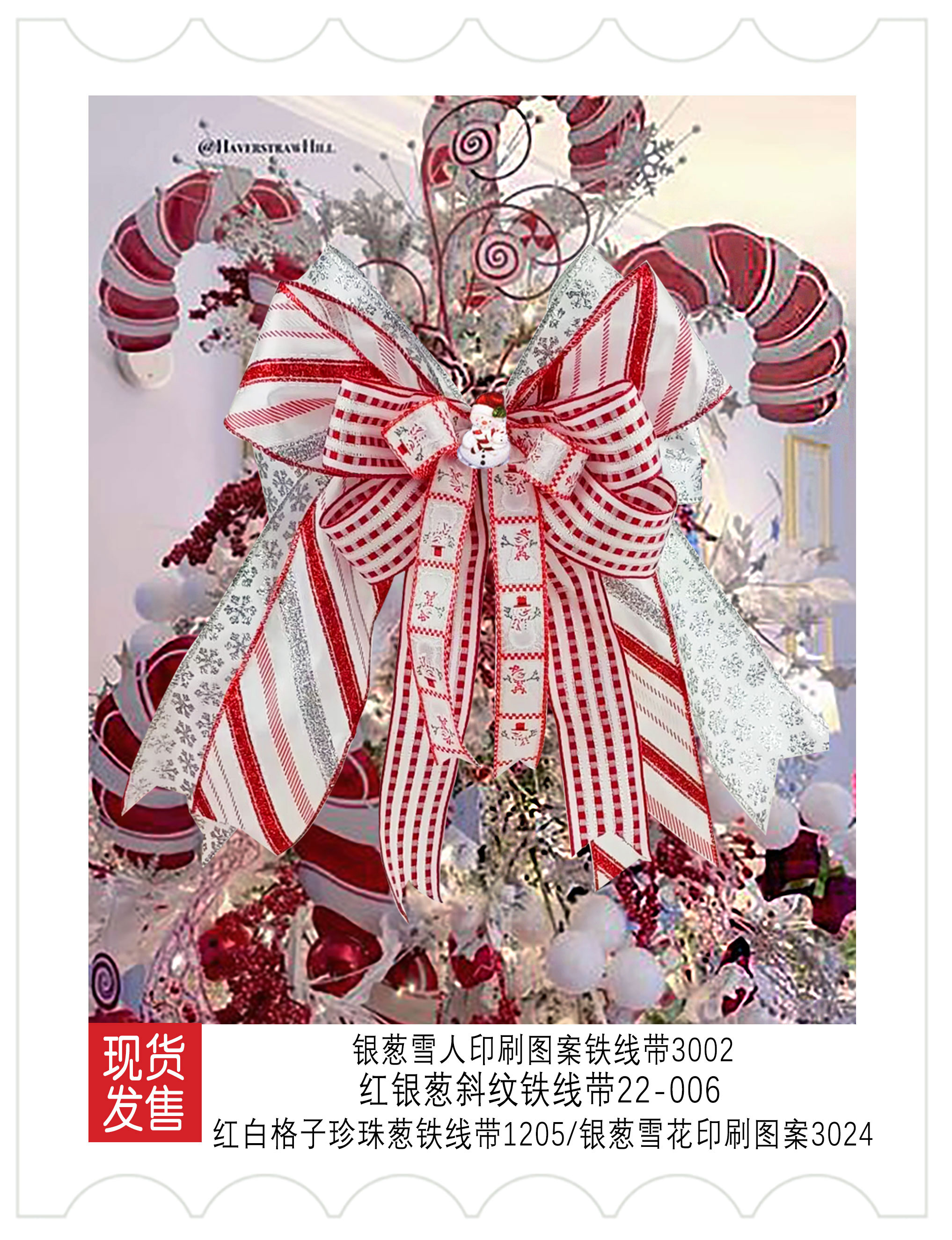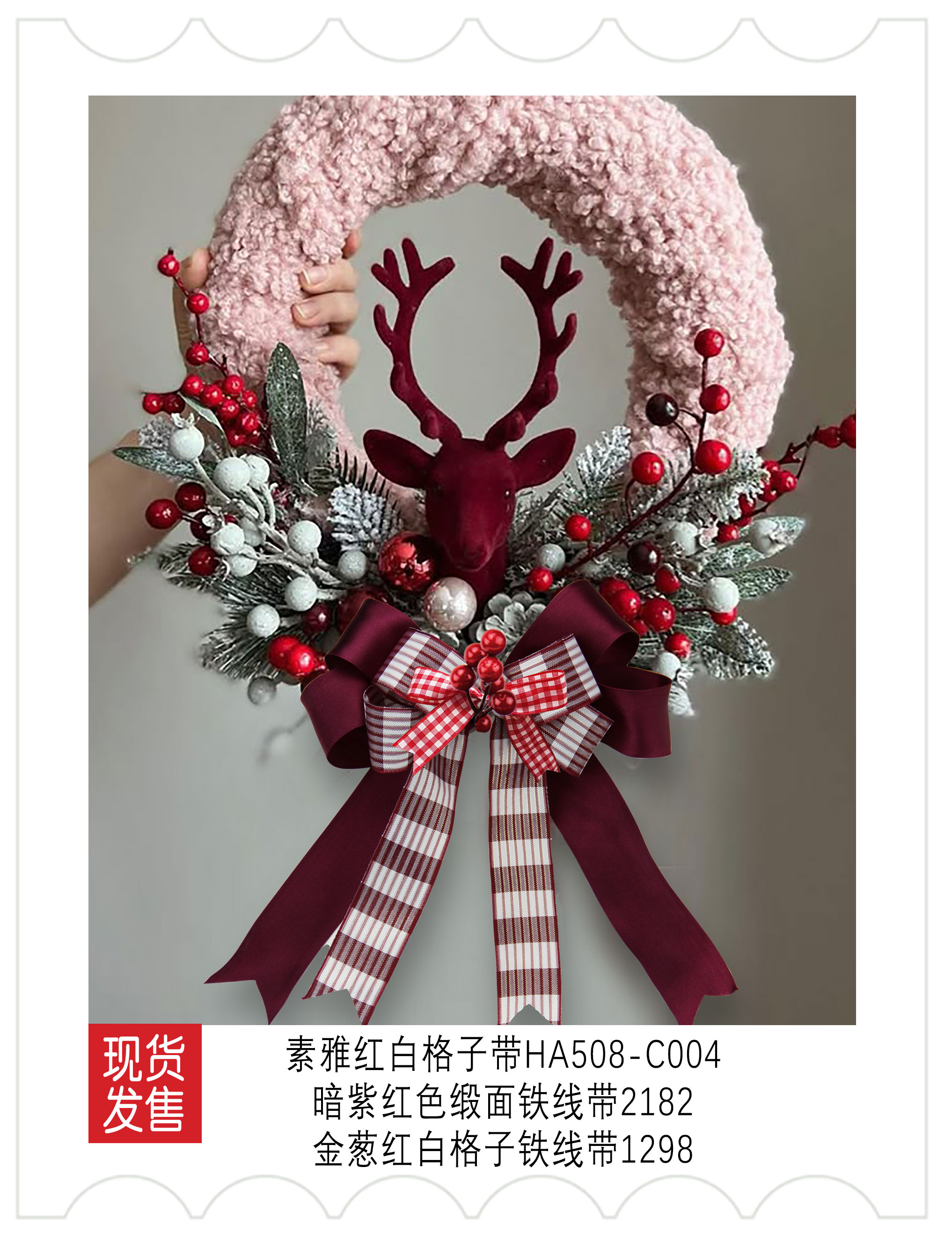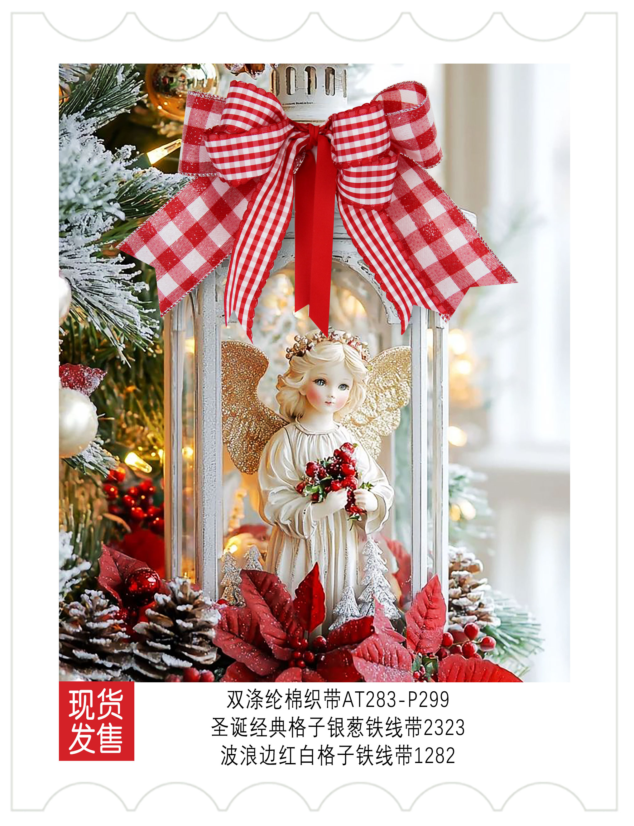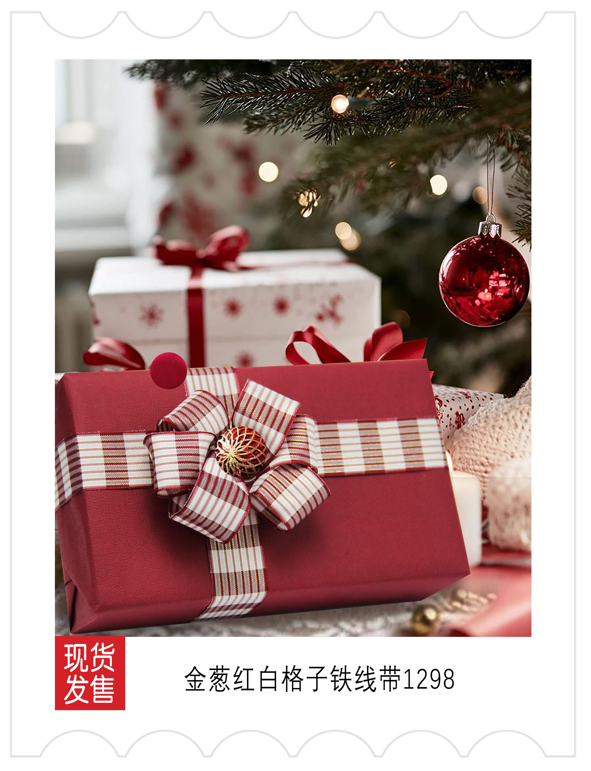 新品上市-圣诞装饰-红白格子织带应用