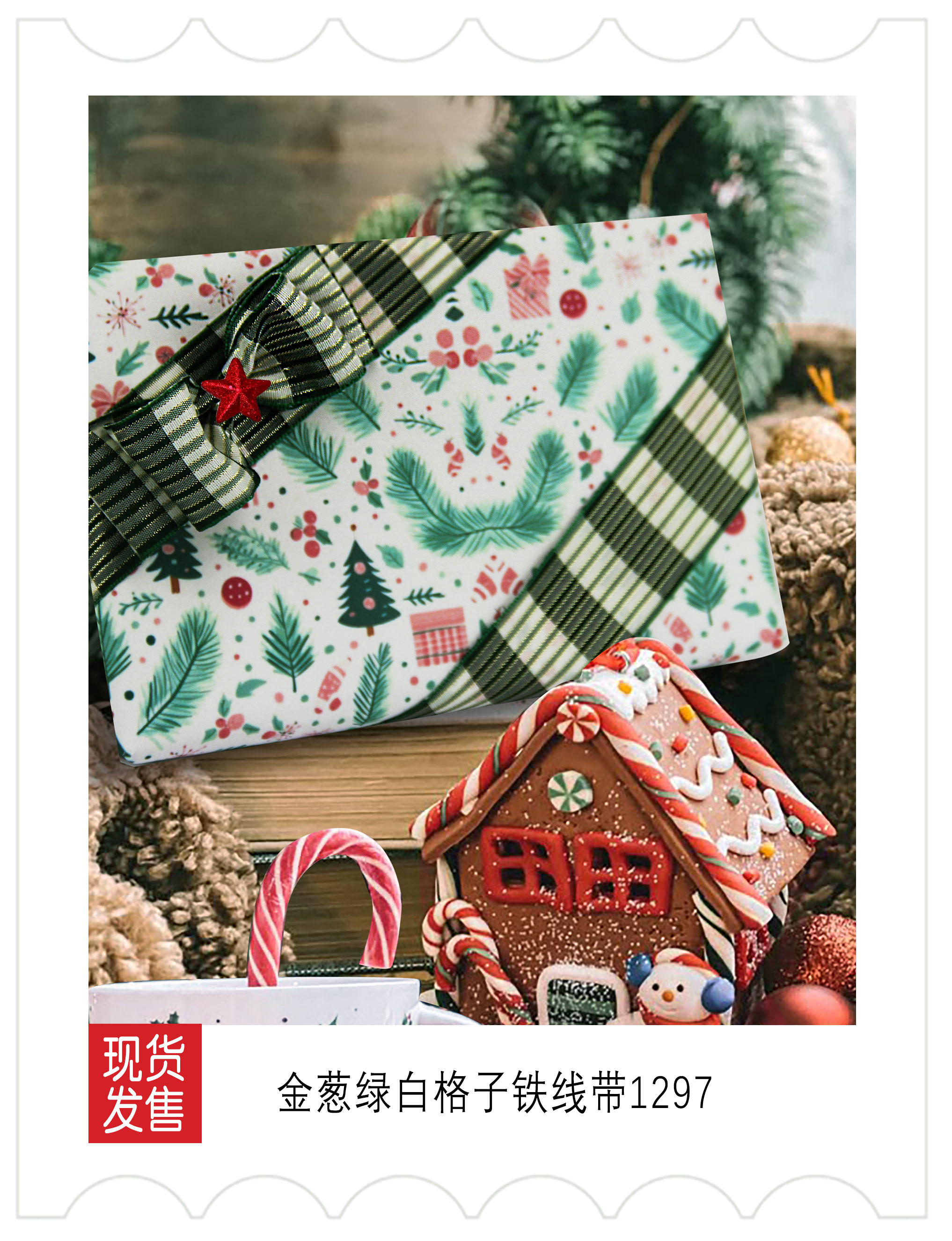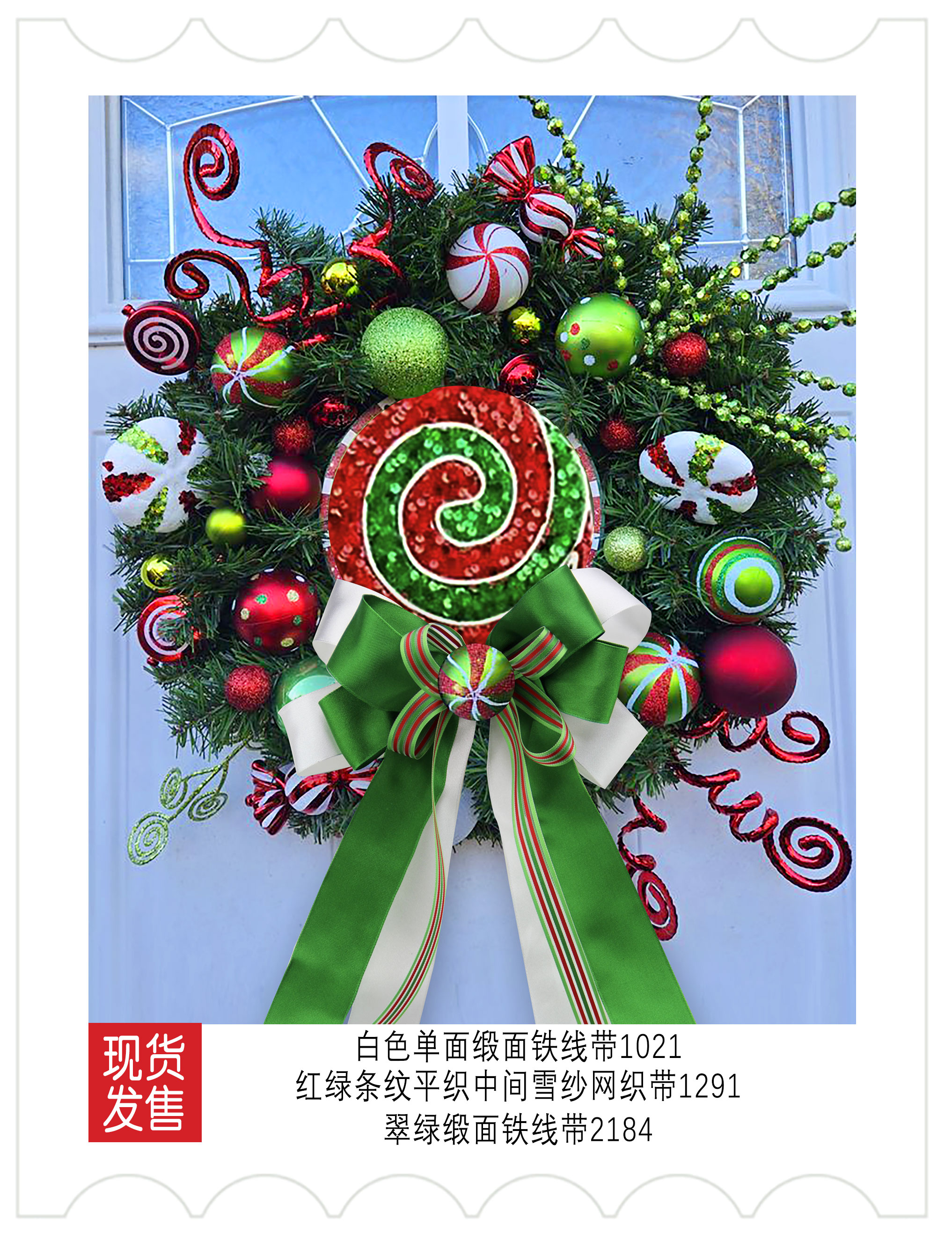 2025圣诞装饰-红白绿色系织带应用