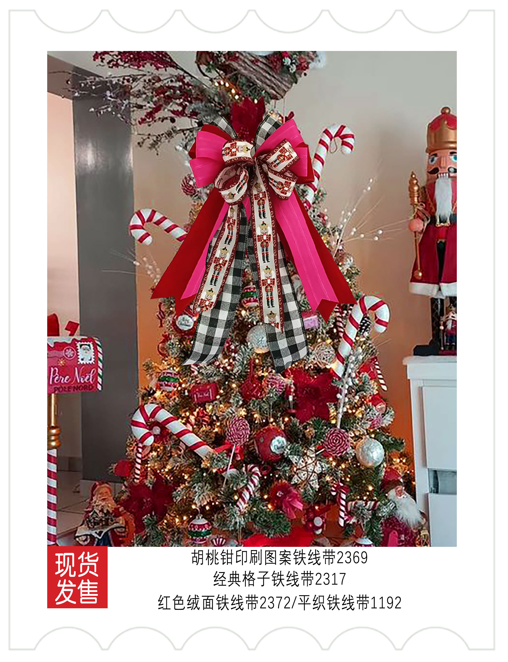2025圣诞装饰-绯色秘语(玫红黑)色系织带应用