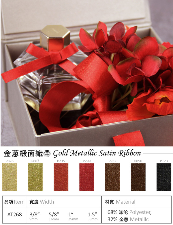 Gold Metallic Satin Ribbon AT268-P299