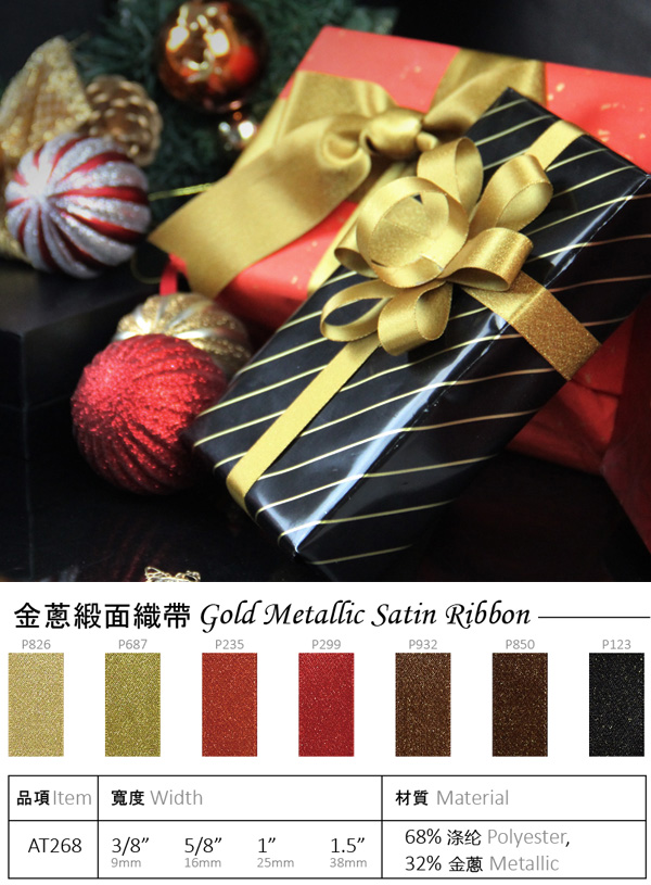 Gold Metallic Satin Ribbon AT268-P687