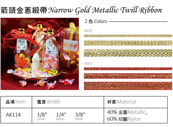 Narrow Gold Metallic Twill Ribbon AK114/AK181