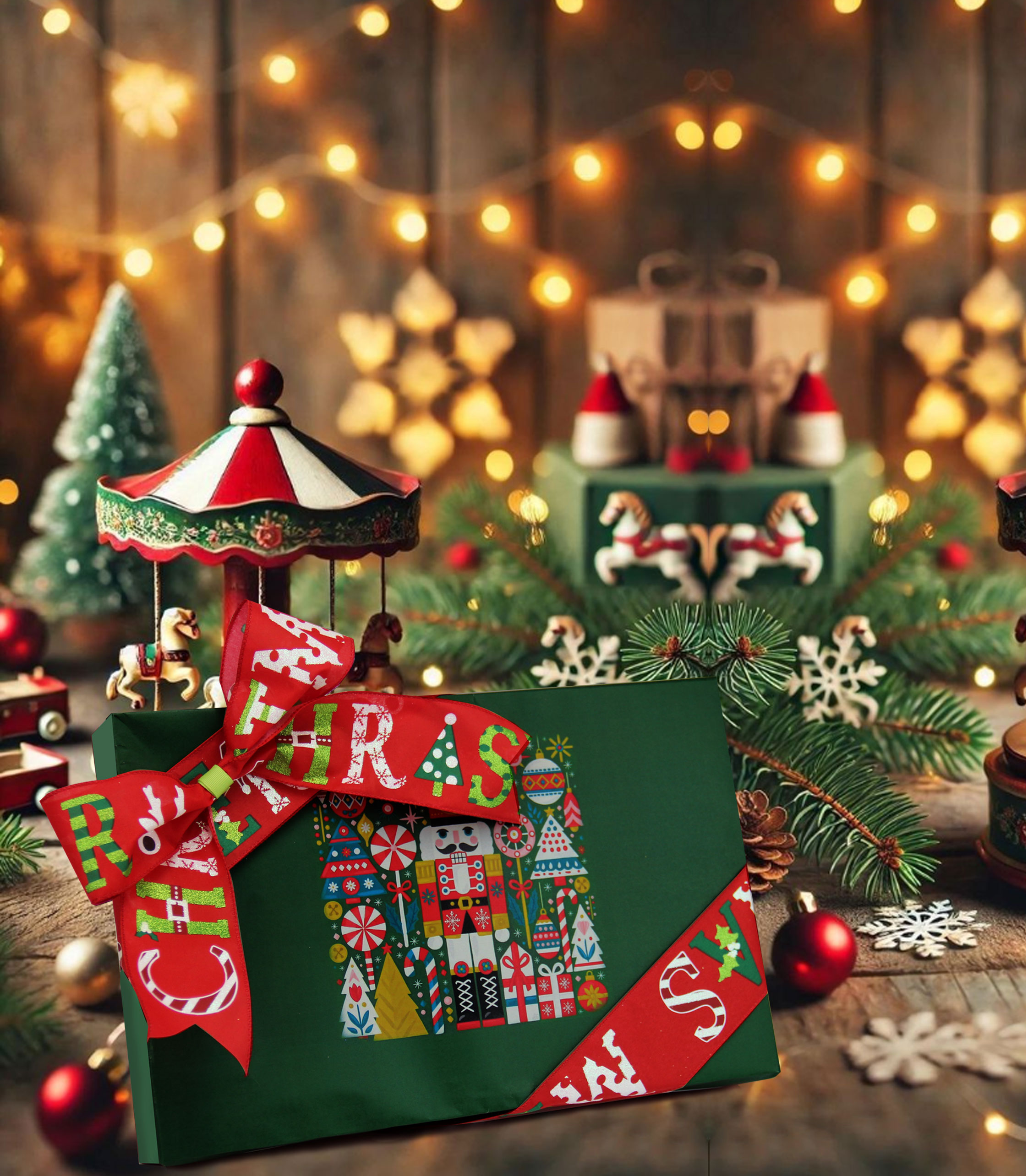 2025圣诞装饰-红白绿色系织带应用