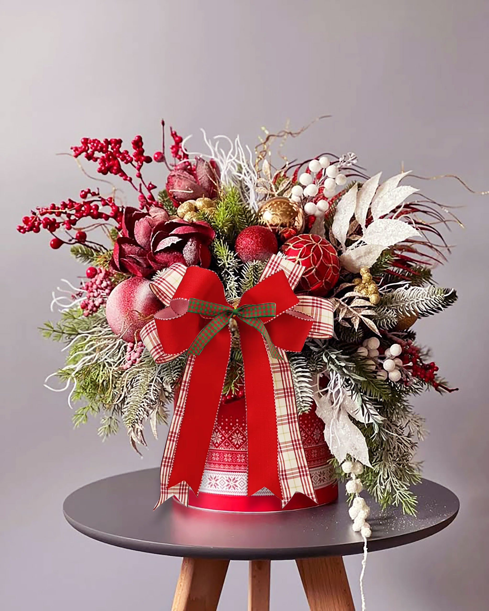 新品上市-圣诞装饰红绿格子织带应用