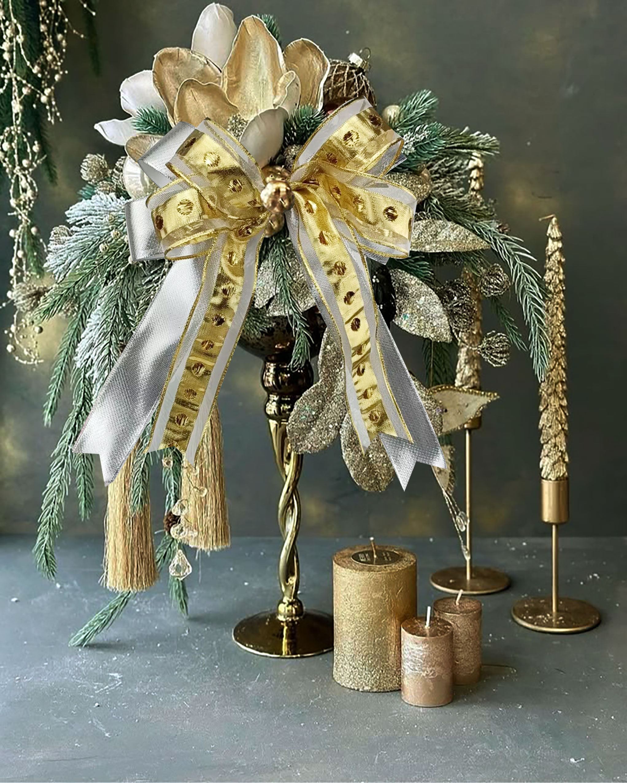 2025圣诞装饰-蓝金银色系织带应用