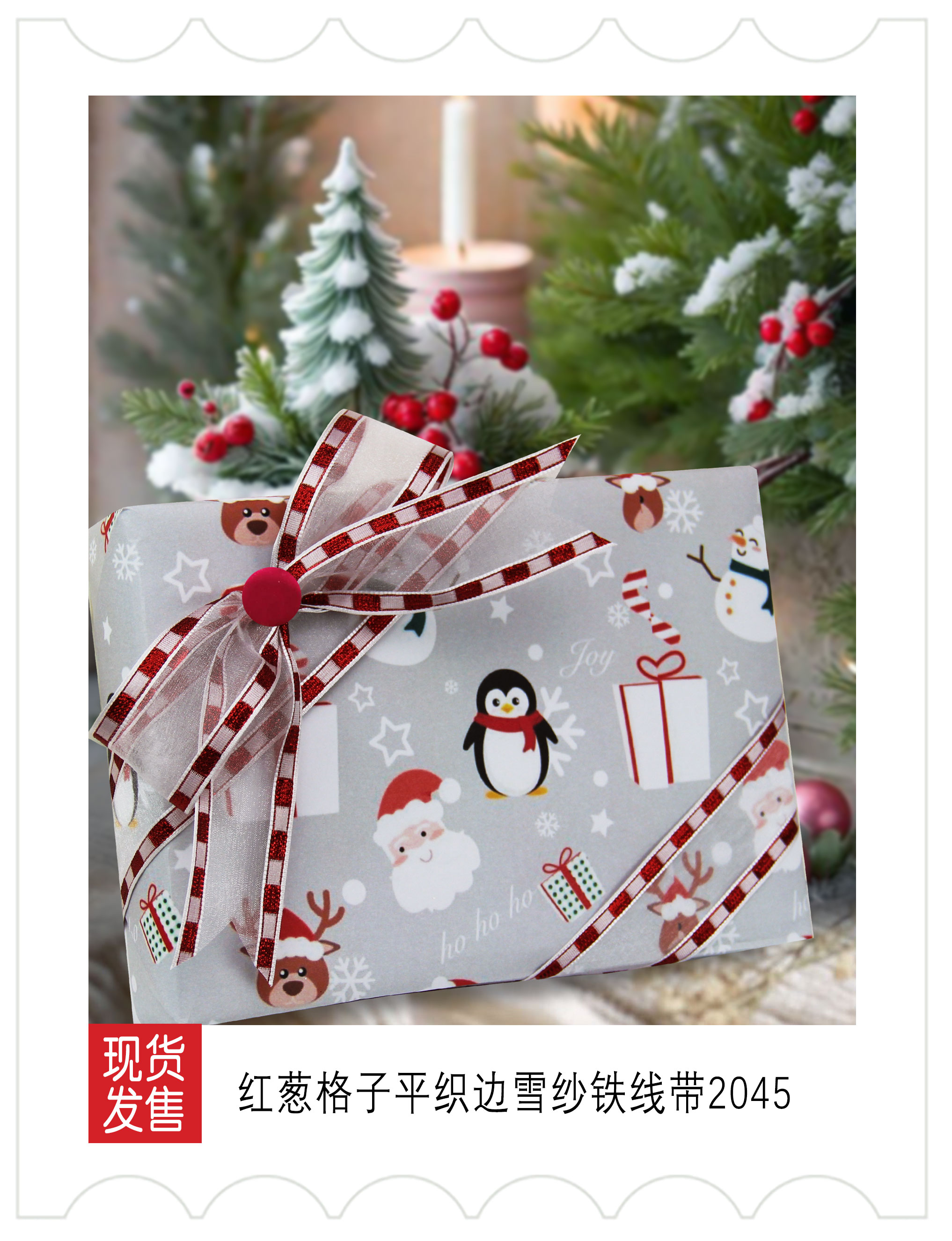 新品上市-圣诞装饰-红白格子织带应用