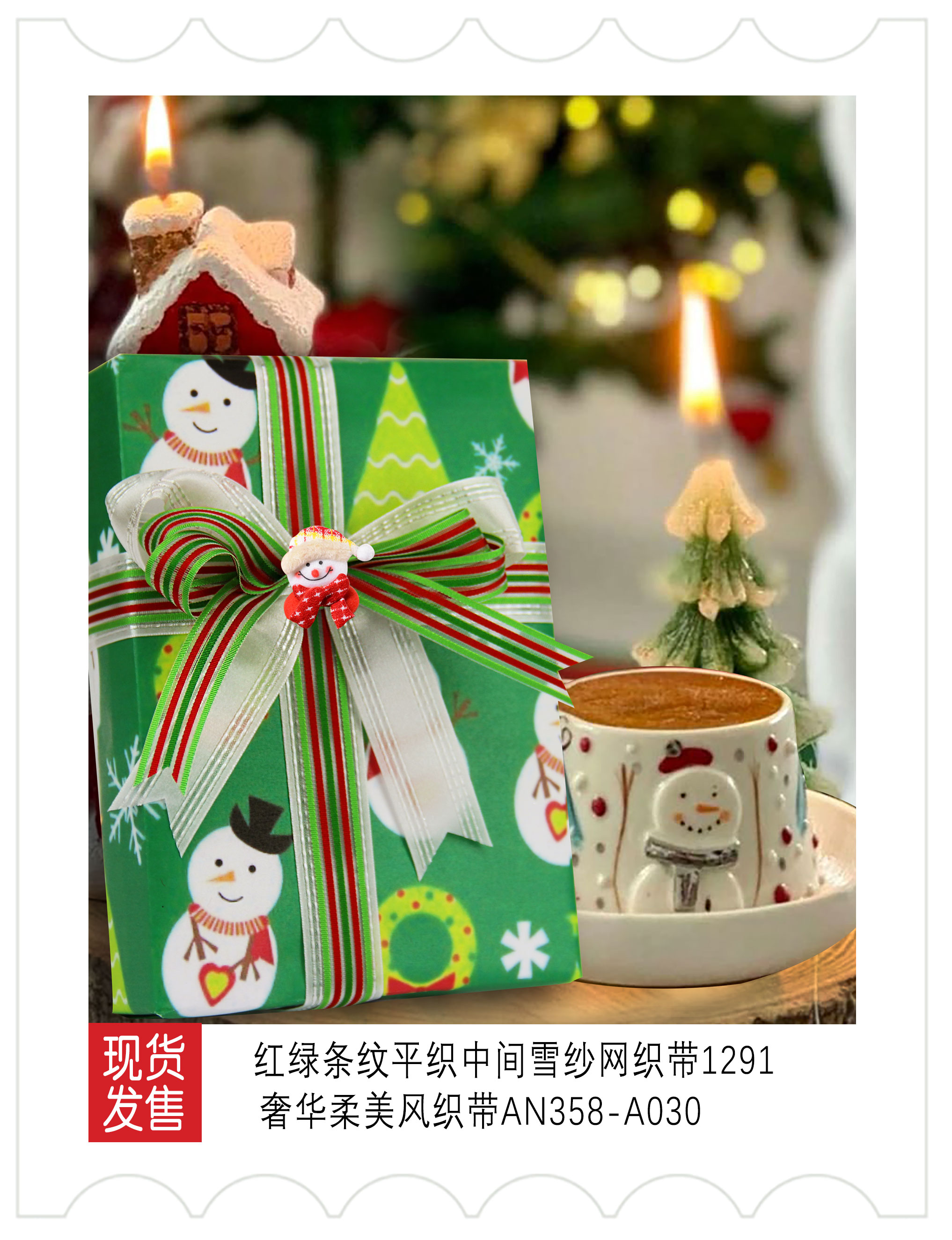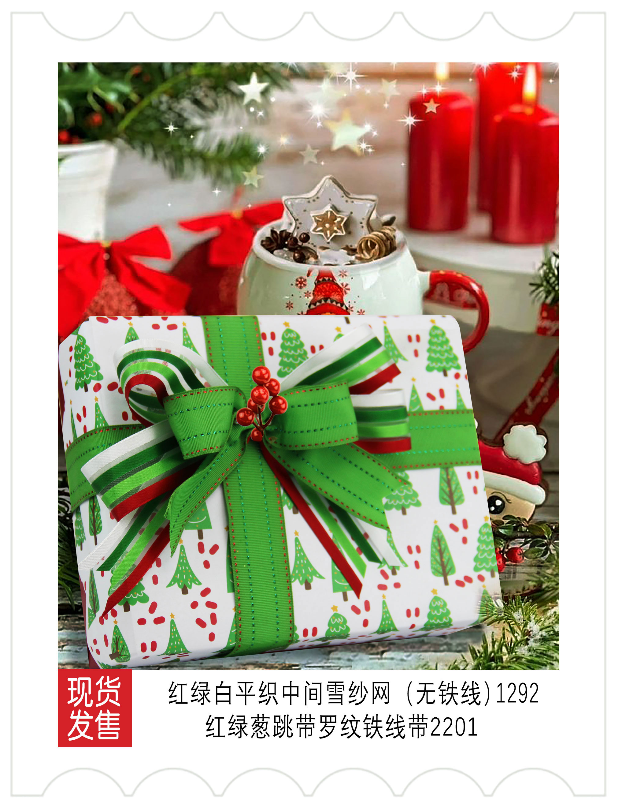 2025圣诞装饰-红白绿色系织带应用