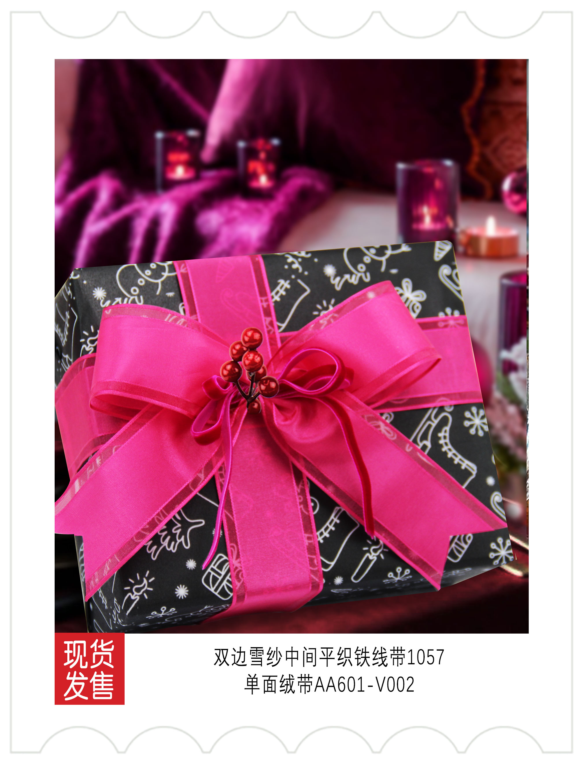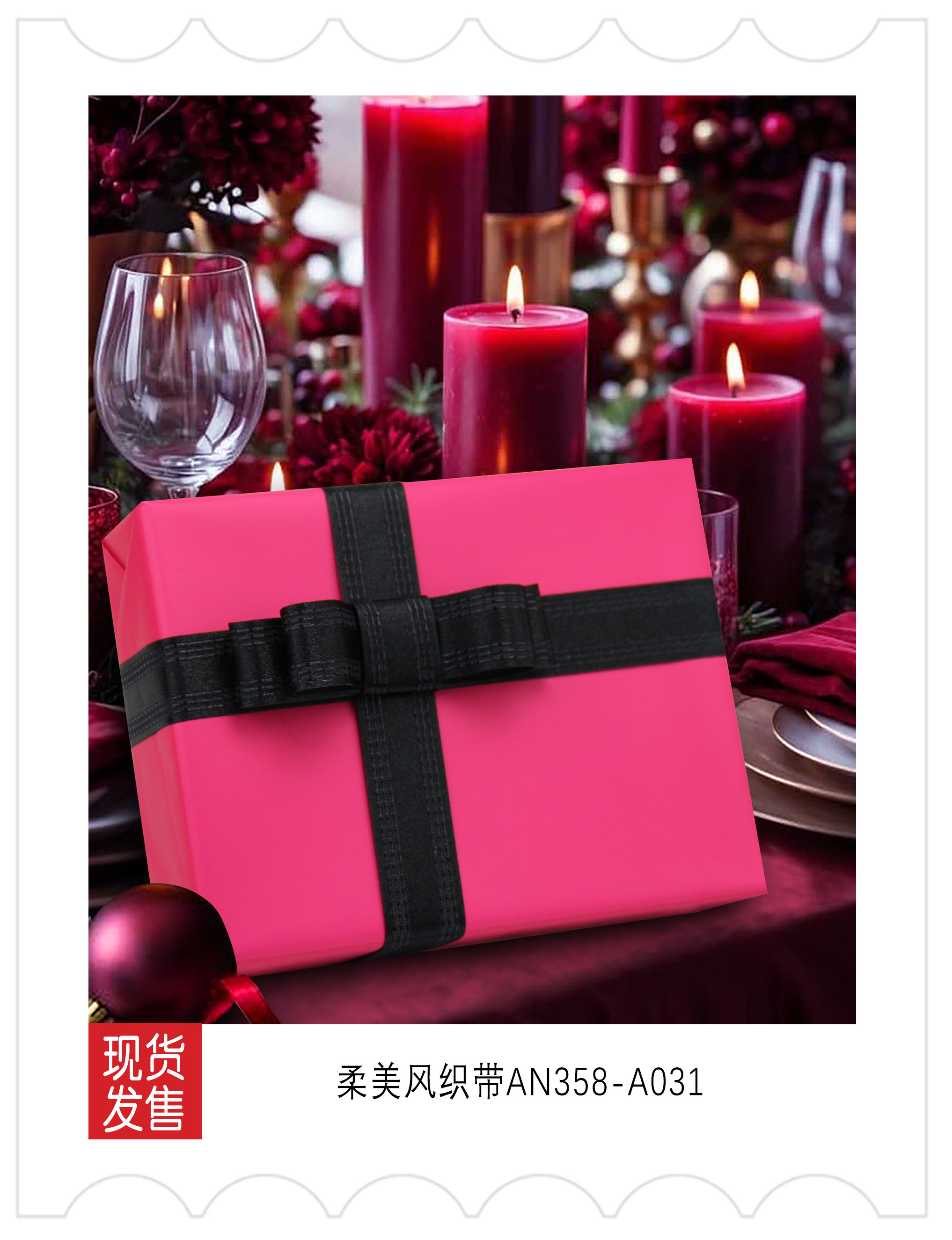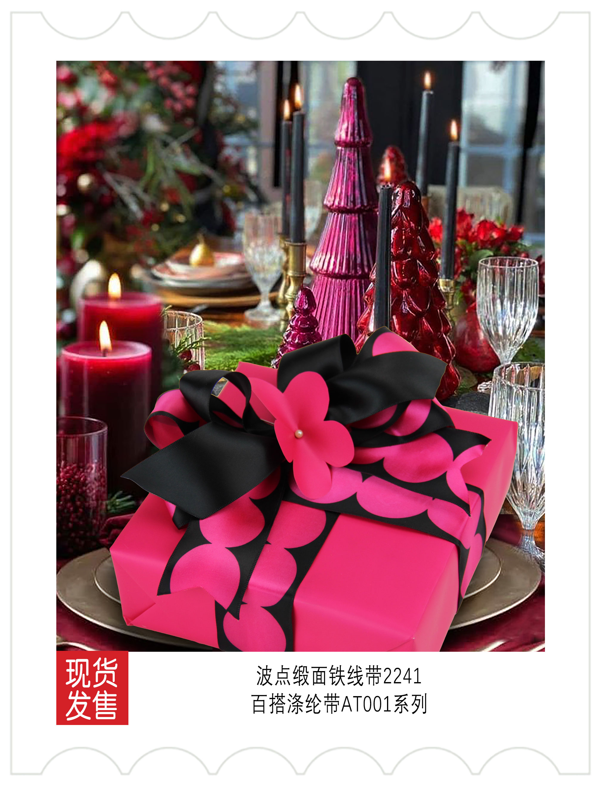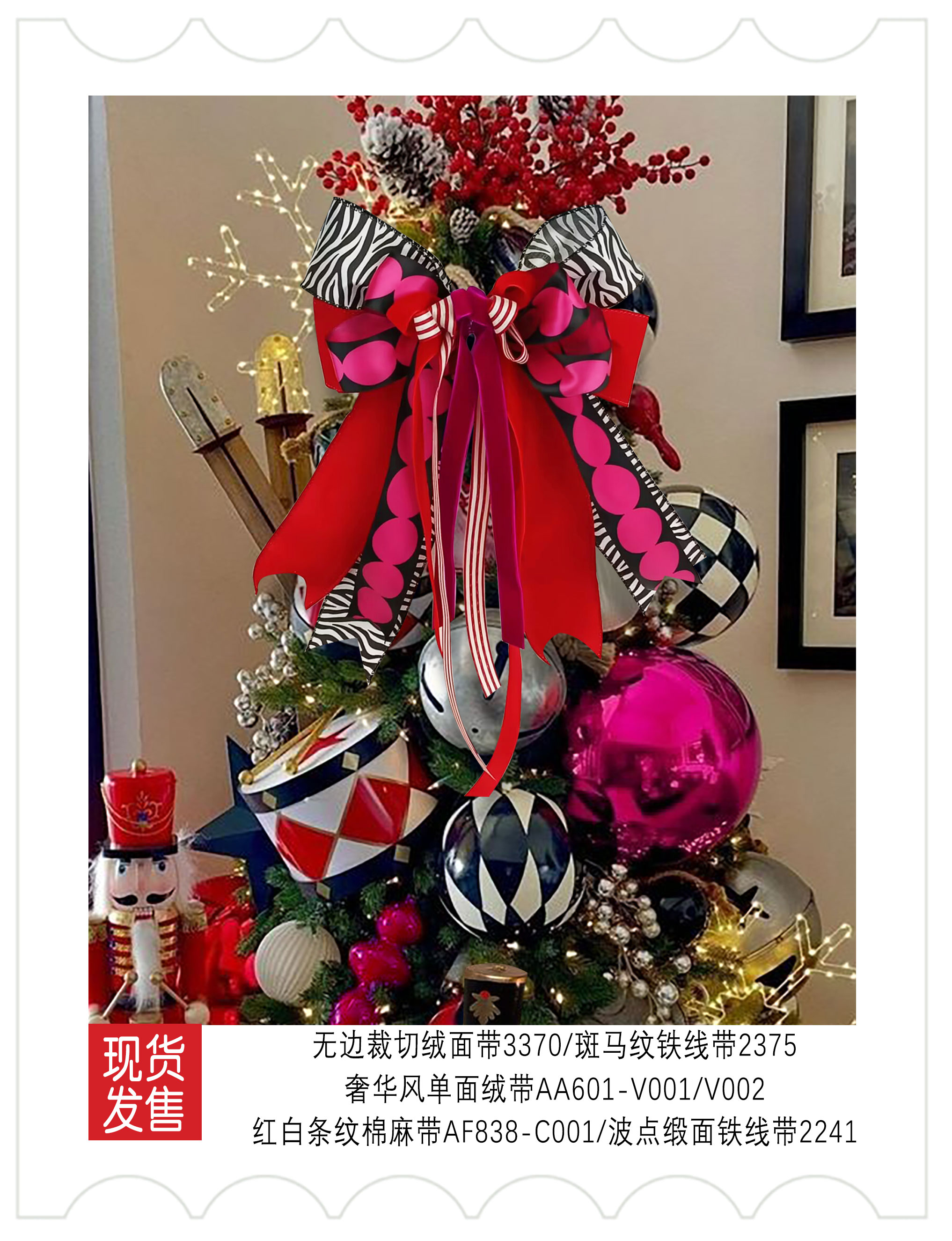 2025圣诞装饰-绯色秘语(玫红黑)色系织带应用