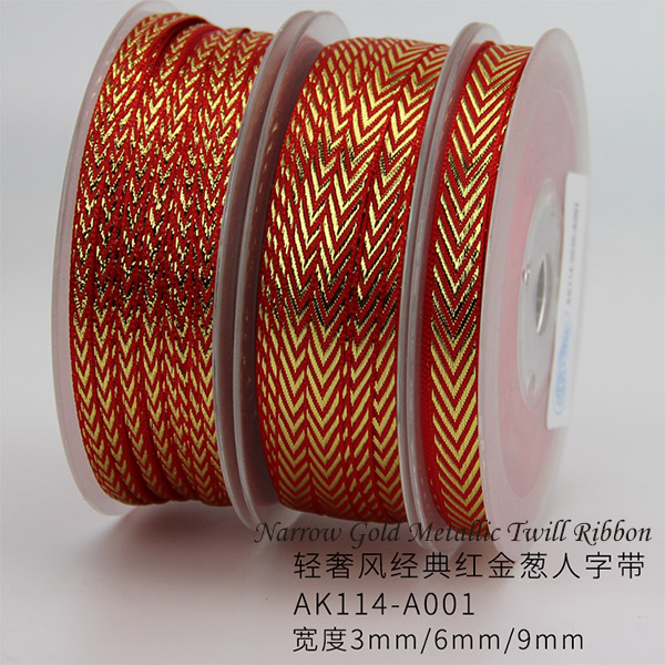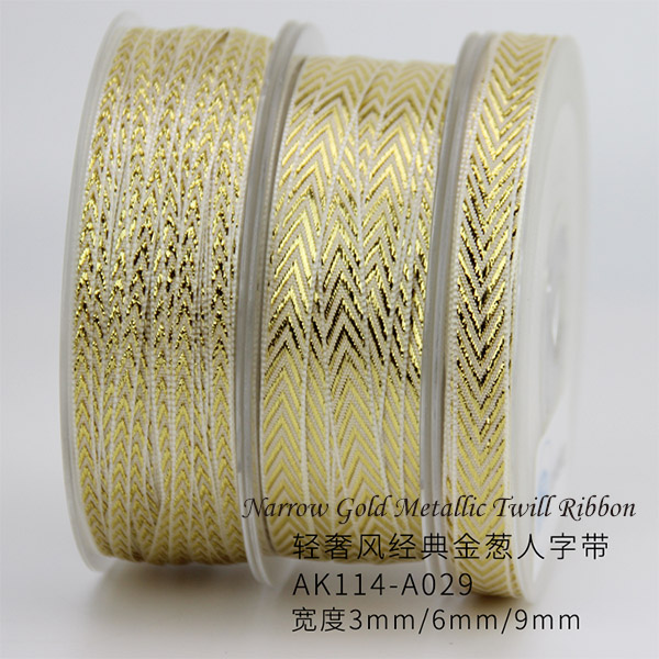 Narrow Gold Metallic Twill Ribbon AK114/AK181